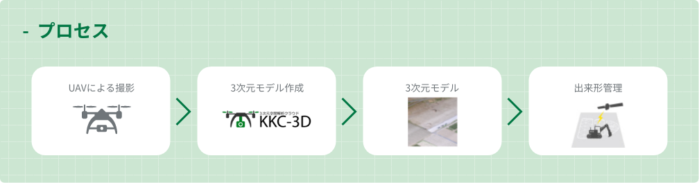 I-Constructionを行う上でのハードルとして、専用資機材の導入コストがありますが、KKC-3Dを用いることで、写真測量用の高性能なパソコンや写真測量ソフトを購入せずに済むため、とりわけ地域の建設業・測量業者にとってはi-Constructionへの参入障壁が低くなります。